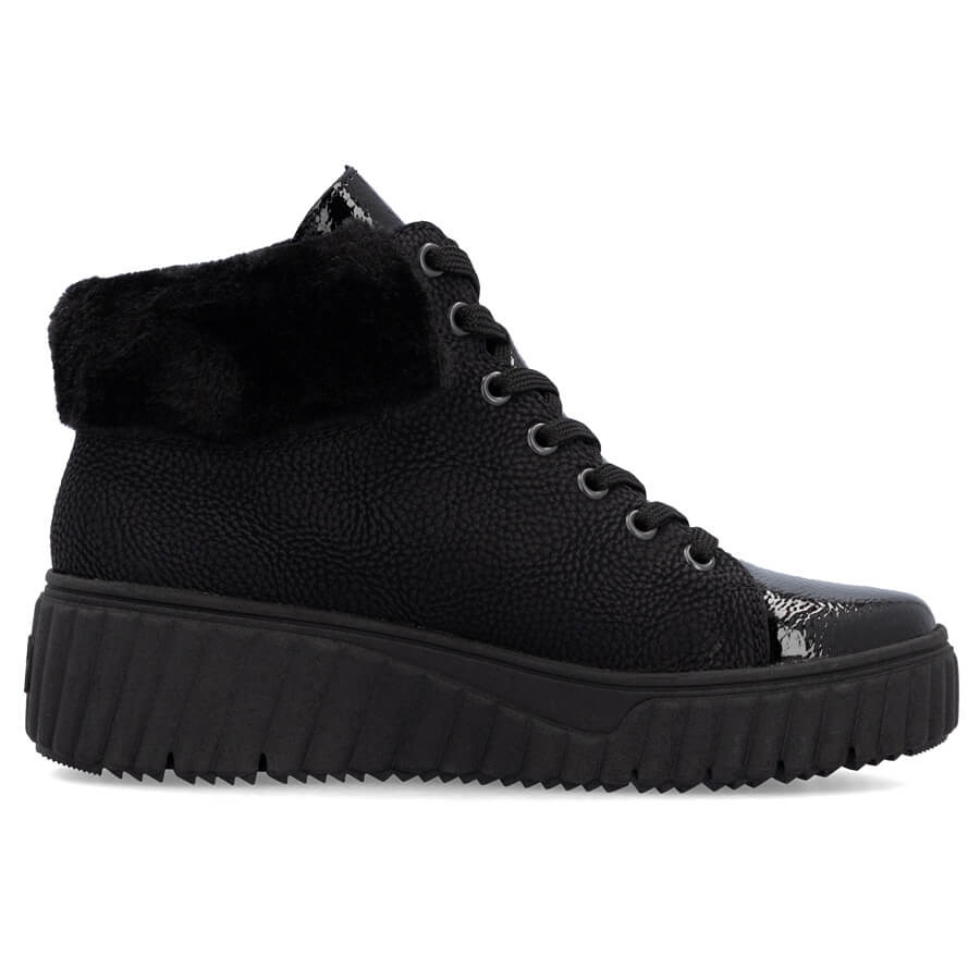 Yksityiskohdat: Naisten vedenpitävät mustat kiilakengät Rieker N2505-00