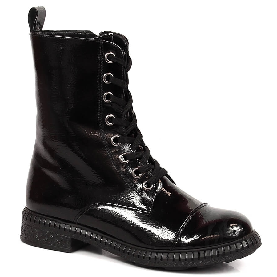 Yksityiskohdat: T.Sokolski Naisten vetoketjulliset nauhasaappaat, musta eristetty T. Sokolski