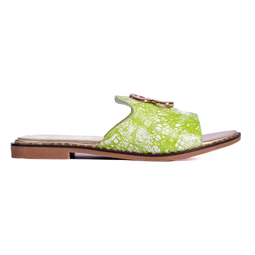 SHELOVET Naisten vihreät tohvelit kultakoristeilla Shelovetilta
