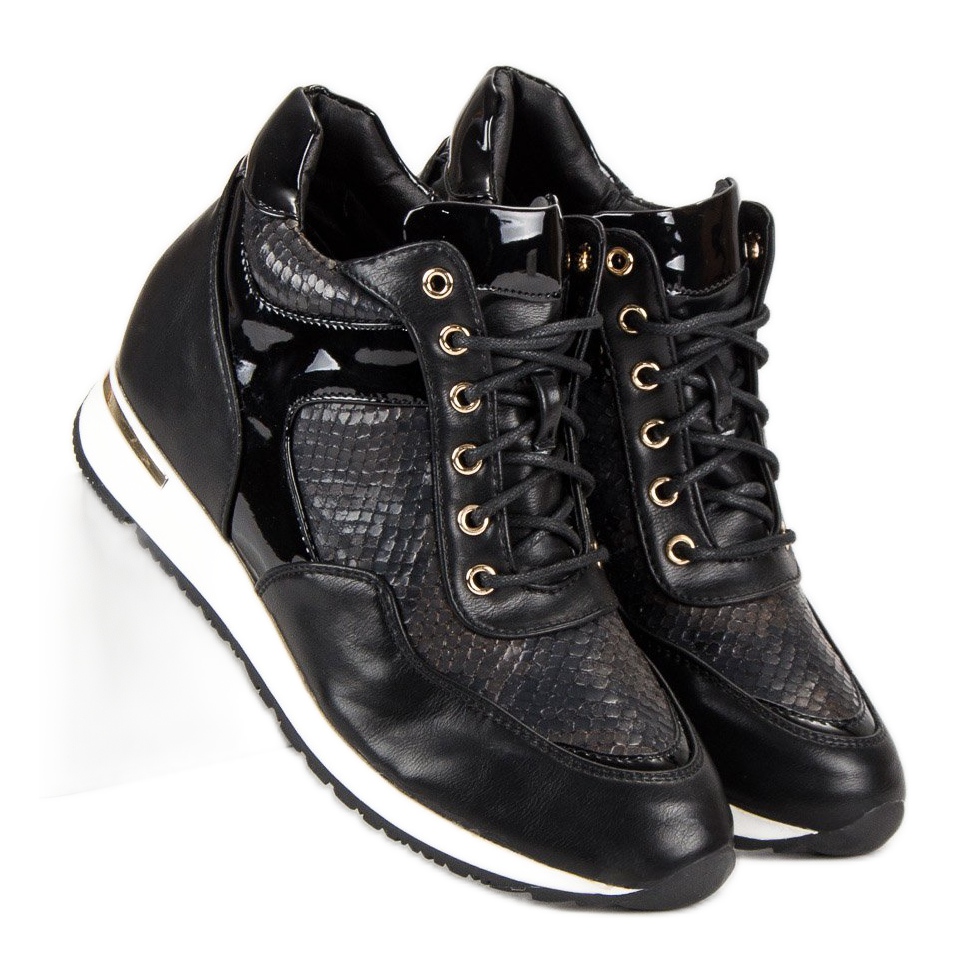 Etsitkö täydellisiä tennareita, joissa yhdistyvät mukavuus ja muodikas look? Mustat nauhalliset lenkkarit valmistajalta J. Star täyttävät varmasti odotuksesi. Nämä tyylikkäät kengät eivät ole vain käytännöllisiä, vaan myös korostavat täydellisesti naisten omaisuutta piilokiilan ansiosta, joka nostaa jalkaa hellästi ja saa jalat näyttämään muodokkaammilta.