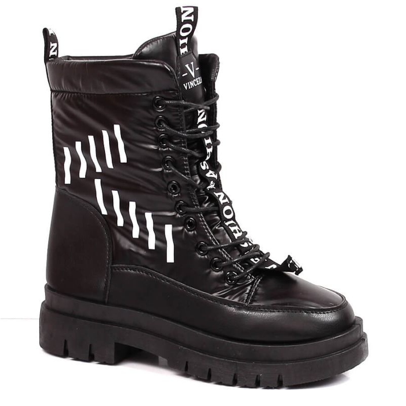 Vincezin lumilaitteet tammikuussa167 - tyylikäs, lämpimät ja mukavat talvikengät naisille. Klassiset, mustat värit yhdistetään käytännöllisiin ratkaisuihin: eristetty vuoraus tarjoaa lämpöä ja alusta ja kiinteä pohja lisää stabiilisuutta liukkailla pinnoilla.
