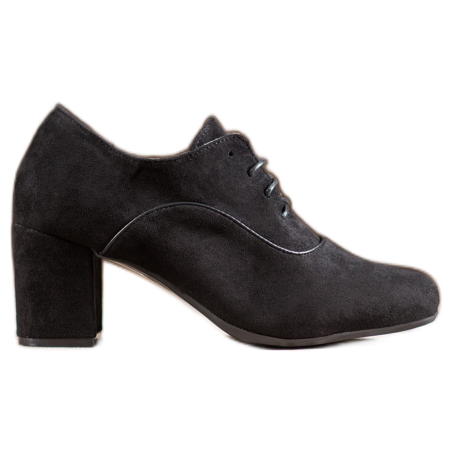 Etsitkö täydellisiä kenkiä, joissa eleganssi yhdistyy arjen mukavuuteen? Nämä ovat mustia nauhapumppuja SHELOVET-merkiltä. Valmistettu korkealaatuisesta ekologisesta nahasta mokkanahkaviimeistelyllä, ne ovat erinomainen valinta naisille, jotka haluavat näyttää tyylikkäältä kaikissa tilanteissa.