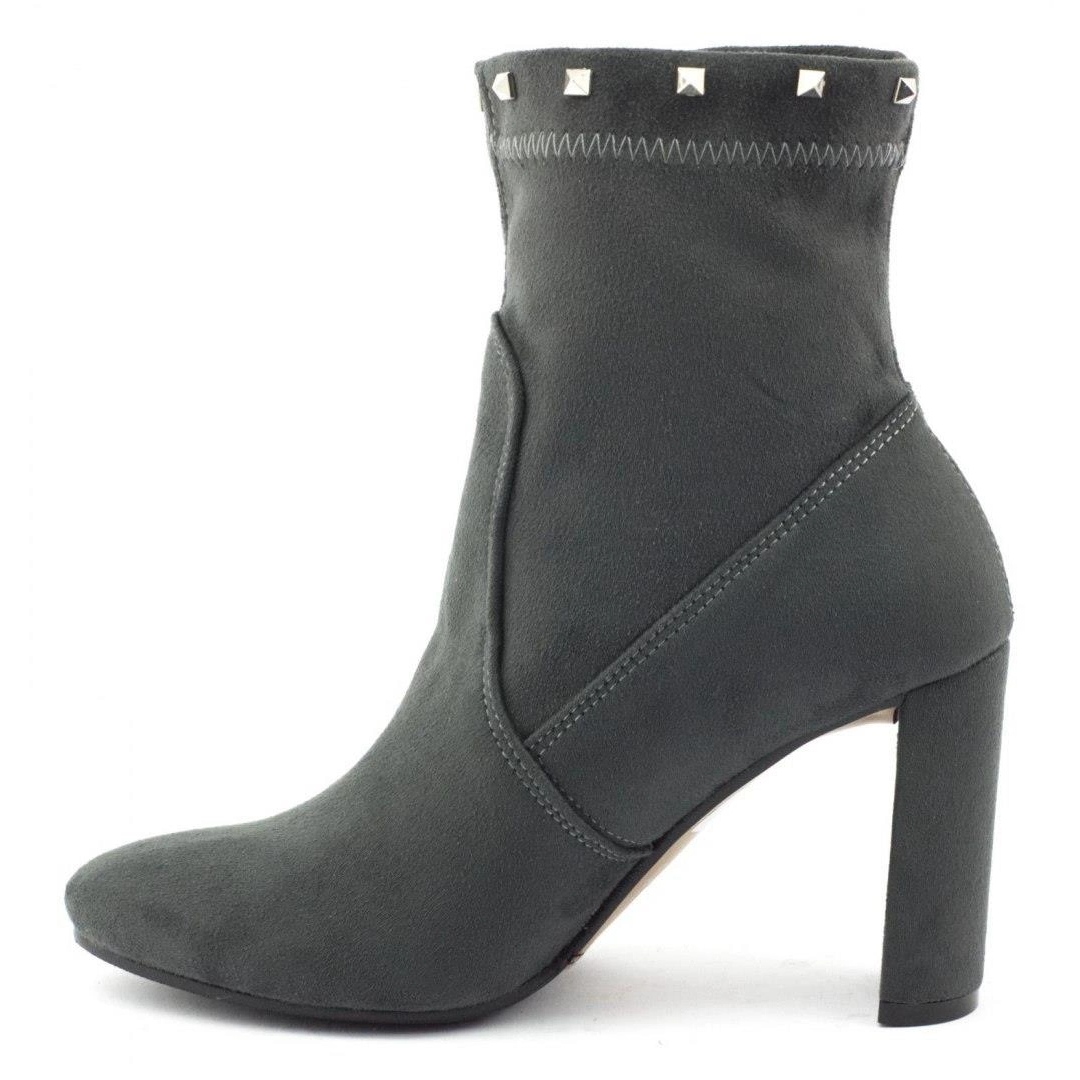 Tyylikkät naiskengät NICOR 090-A yhdistää muodikkaan, kivihahmon, ja käytön mukavuus. Ulkopuolelta, joka on valmistettu ekologisesta nahasta grafiittivarjossa, jossa on monivärisiä aksentteja, sisäpuolella on luonnon nahkainen insertti, joka varmistaa kävelyn mukavuuden koko päivän. Yläjoukko ulottuu nilkkaan ja on sisustettu strassilla ja nastoilla, ja pyöristetty nenä lisää universaalia ilmettä.