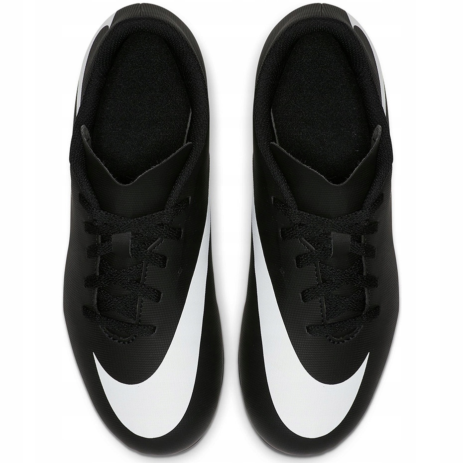 Nike Bravata II FG JR 844442 001 Jalkapallokengät - Juniorit, jotka ovat vasta aloittamassa seikkailunsa jalkapalloilla, löytyvät tästä mallin mukavuudesta, kestävyydestä ja jonkin verran tarttuvuutta luonnollisella kentällä.