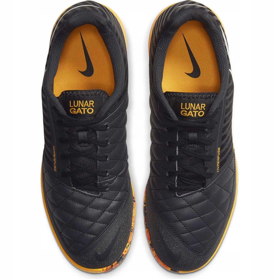 Veto hallinnasta ja tyylistä sisäpelin aikana. Nike Lunargato II on ammattimainen sisätiloissa sijaitsevat sisäkokoelman sisätiloissa, jotka on suunniteltu tarkkaan peliin intensiivisissä sisätiloissa. Malli erotetaan moderni, musta ja keltainen muotoilu ja se on Ricardinho -linjan kasvot.