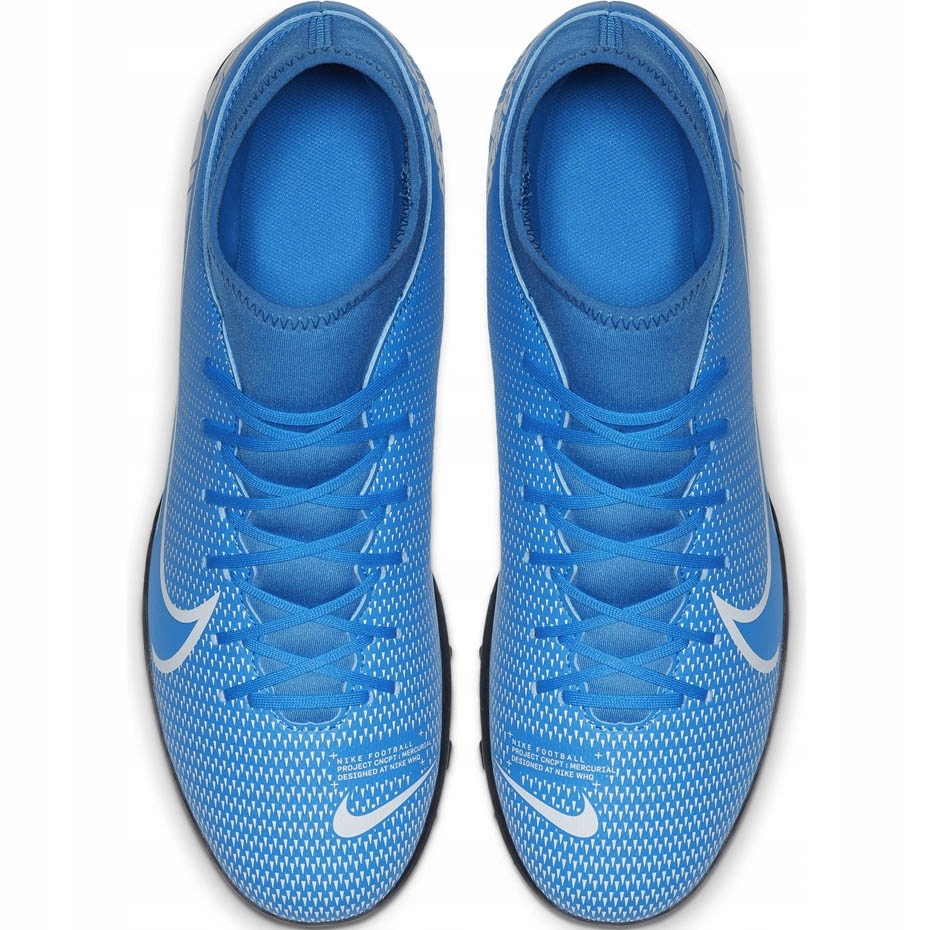 Nike Mercurial Superfly 7 Club TF AT7980-414 Jalkapallokengät-täydellinen keinotekoiselle pinnalle (turve). Uuden valon kokoelman Mercurial -malli yhdistää dynaamisen, sinisen ja valkoisen suunnittelun mukavuuteen ja kestävyyteen, jota tarvitaan virkistyspeliin.