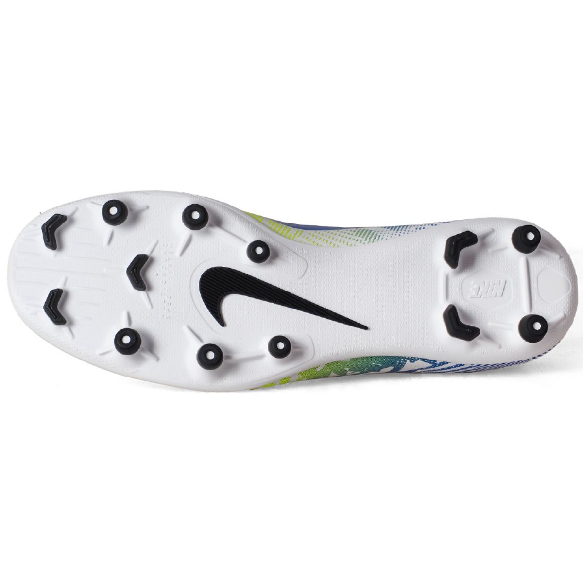 Yleiskäyttönsä ansiosta Nike Mercurial Vapor 13 -kengät sopivat sekä luonnonnurmikolla että keinotekoisilla pinnoilla pelaamiseen. Taitotasostasi riippumatta nämä kiinnikkeet auttavat parantamaan pelityyliäsi ja lisäämään itseluottamustasi kentällä.