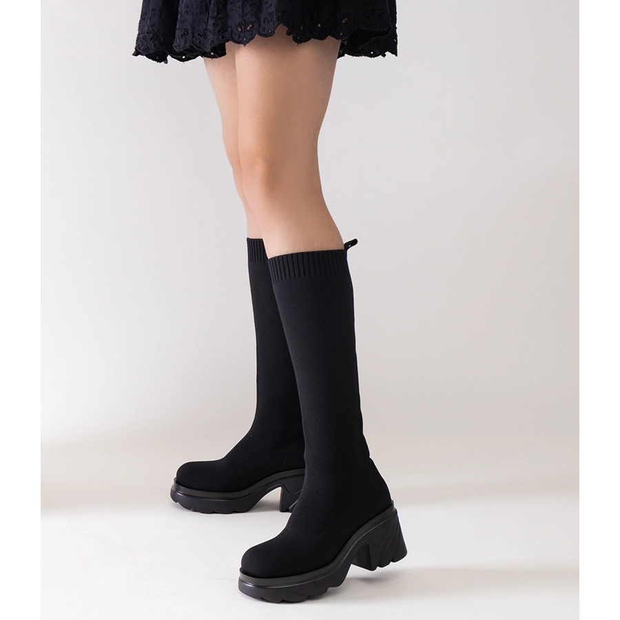 Mustat saappaat joustavalla Nimroda -yläosalla on täydellinen valinta naisille, jotka arvostavat sekä tyyliä että mukavuutta. Heidän klassinen muotoilu pyöreällä nenällä ja litteällä kantapäällä laiturilla tekevät niistä täydellisiä joka päivä, mutta myös täydellisesti täydentävät tyylikkäät tyylistykset iltamatkoihin.