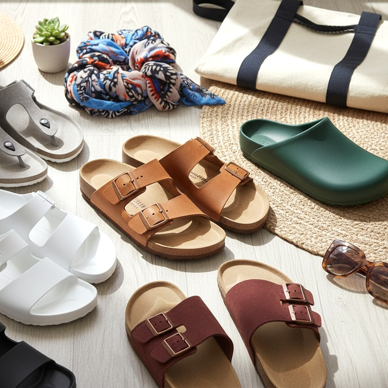 Markkinoilla on monia malleja: klassisia kahdella hihnalla (Arizona), varvastossuja (Gizeh) tai suljetuista puukengistä (Boston). Voit myös valita materiaaleista: luonnonnahka, mokka tai vedenpitävä EVA-vaahto (ihanteellinen uima-altaalle). Jokaiselle löytyy jotakin tyylistä ja budjetista riippumatta.