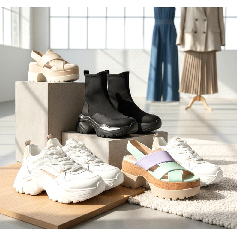 Alustakengät ovat toinen kauden vahva trendi, joka menee paljon sandaaleja pidemmälle. Vuonna 2026 alusta näkyy kaikkialla: loafereissa, nilkkureissa, baletissa ja jopa klassisissa oxfordeissa. Lavan korkeus vaihtelee lempeästä 3 cm:stä näyttävään 7 cm:iin, joten jokainen voi löytää oman mukavuustasonsa.