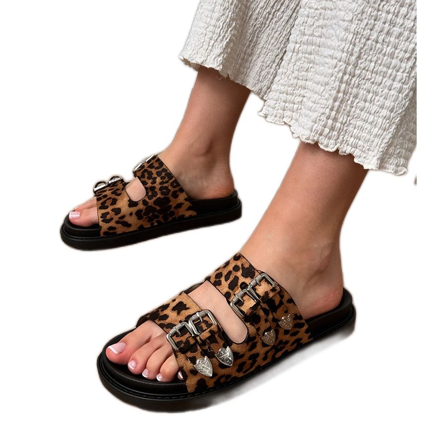 Esittelemme leopardin naisten tossut koristeellisilla beige -kiinnikkeillä - erinomainen valinta naisille, jotka arvostavat sekä tyyliä että mukavuutta. Nämä klassiset flip -liukut erottuvat muodikkaasta eläinkuviosta, joka antaa heille luonteen ja sopii hyvin uusimpiin suuntauksiin.