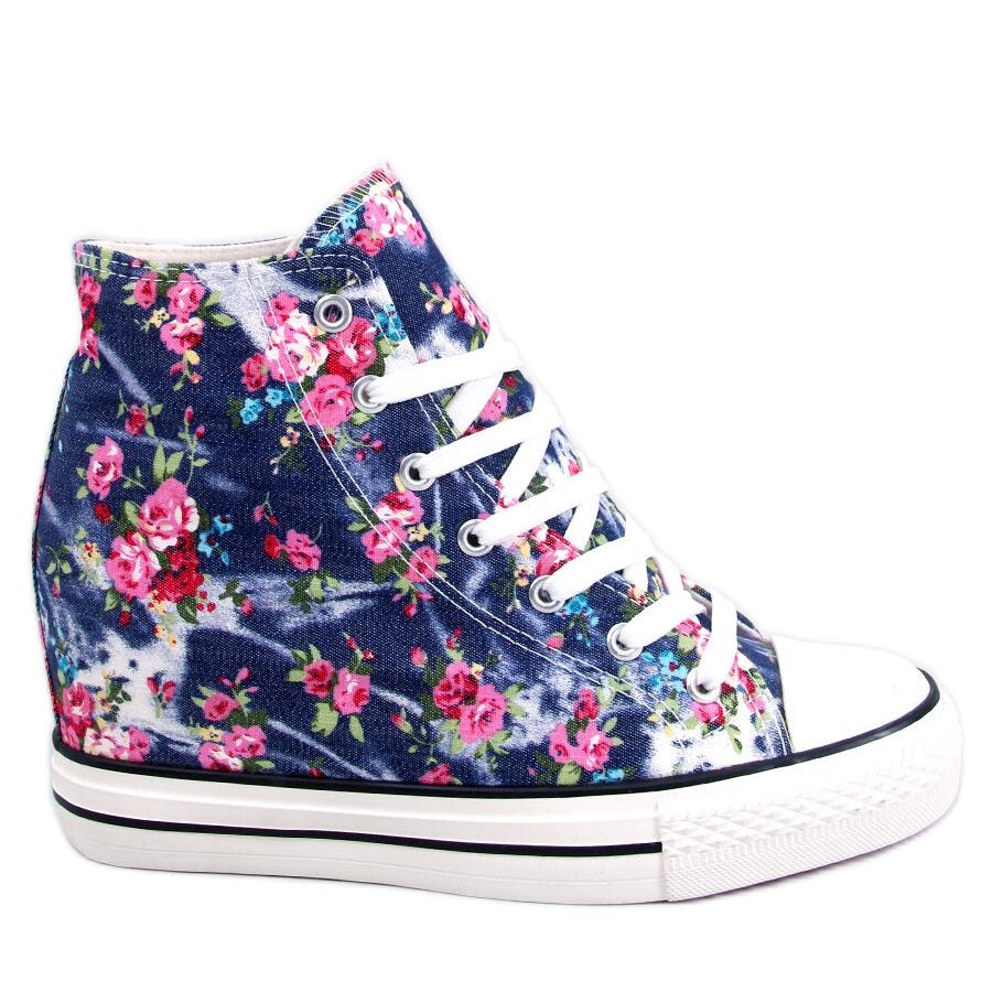 Yksityiskohdat: BM Paradis Navy -kukkaiset korkeavarttaiset lenkkarit sininen