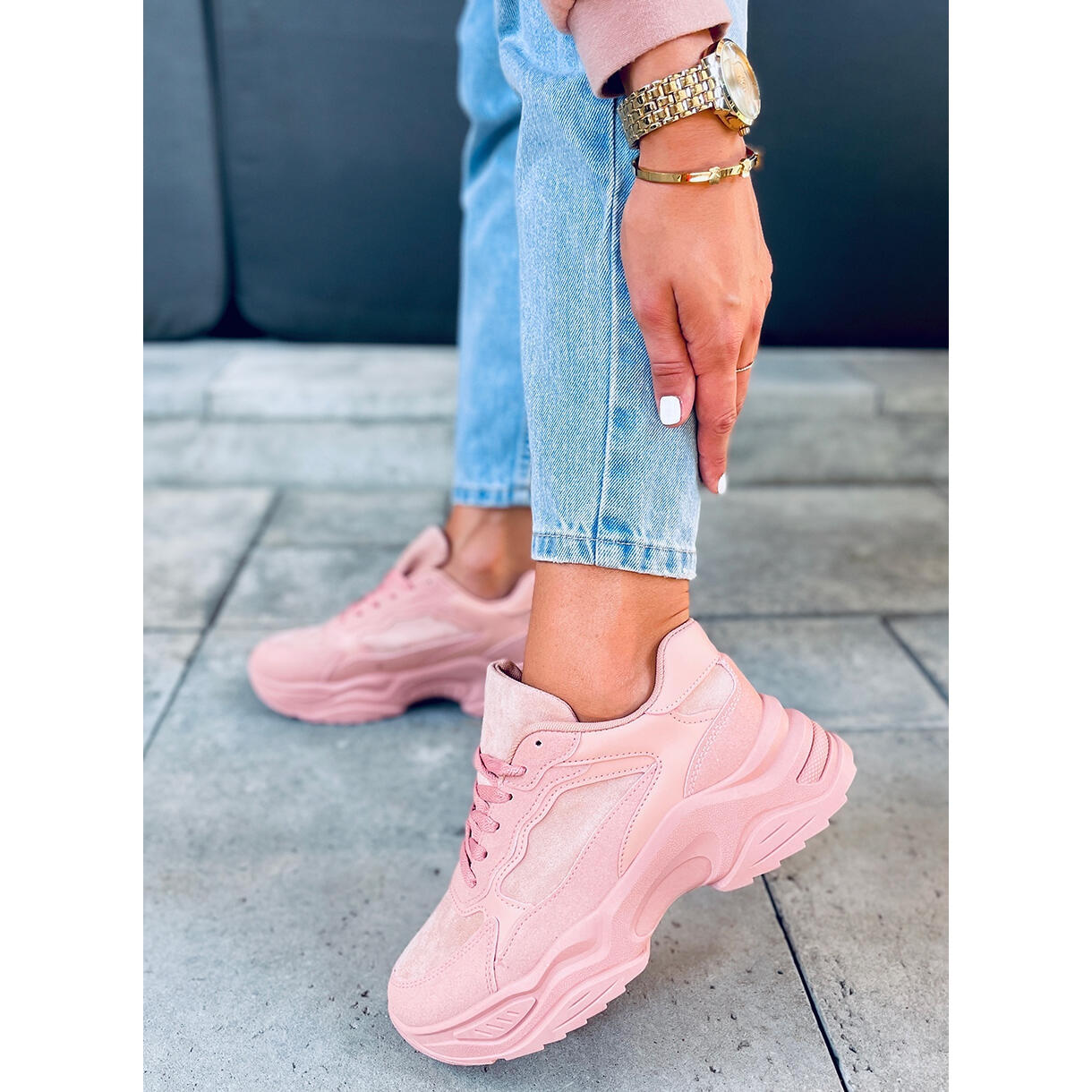 Dalla Pink -kenkiin on ominaista muodikas, paksu pohja, joka ei vain lisää urheilullista luonnetta, vaan tarjoaa myös riittävän iskunvaimennuksen arjen toiminnassa. Kengän sisäpuoli on vuorattu miellyttävällä kankaalla, mikä tekee niistä mukavat myös pitkässä käytössä. Pyöreä kärki ja litteä kantapää tekevät niistä ihanteellisen ratkaisun jokapäiväiseen käyttöön ja harjoitteluun.