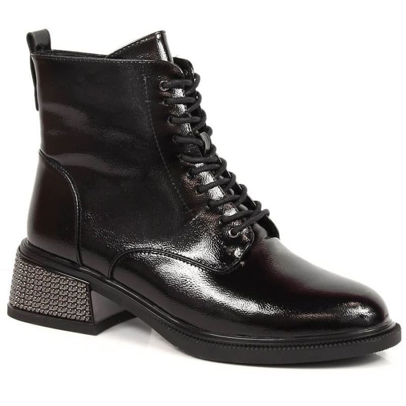 Nilkan yläpuolelle ulottuva korkea malli tarjoaa riittävän tuen, ja 4 senttimetrin tasainen kantapää antaa eleganssia ja itseluottamusta mukavuudesta tinkimättä. Pyöreä kärki lisää klassista luonnetta, ja lakattu viimeistely ja koristeellinen kantapää houkuttelevat huomiota.