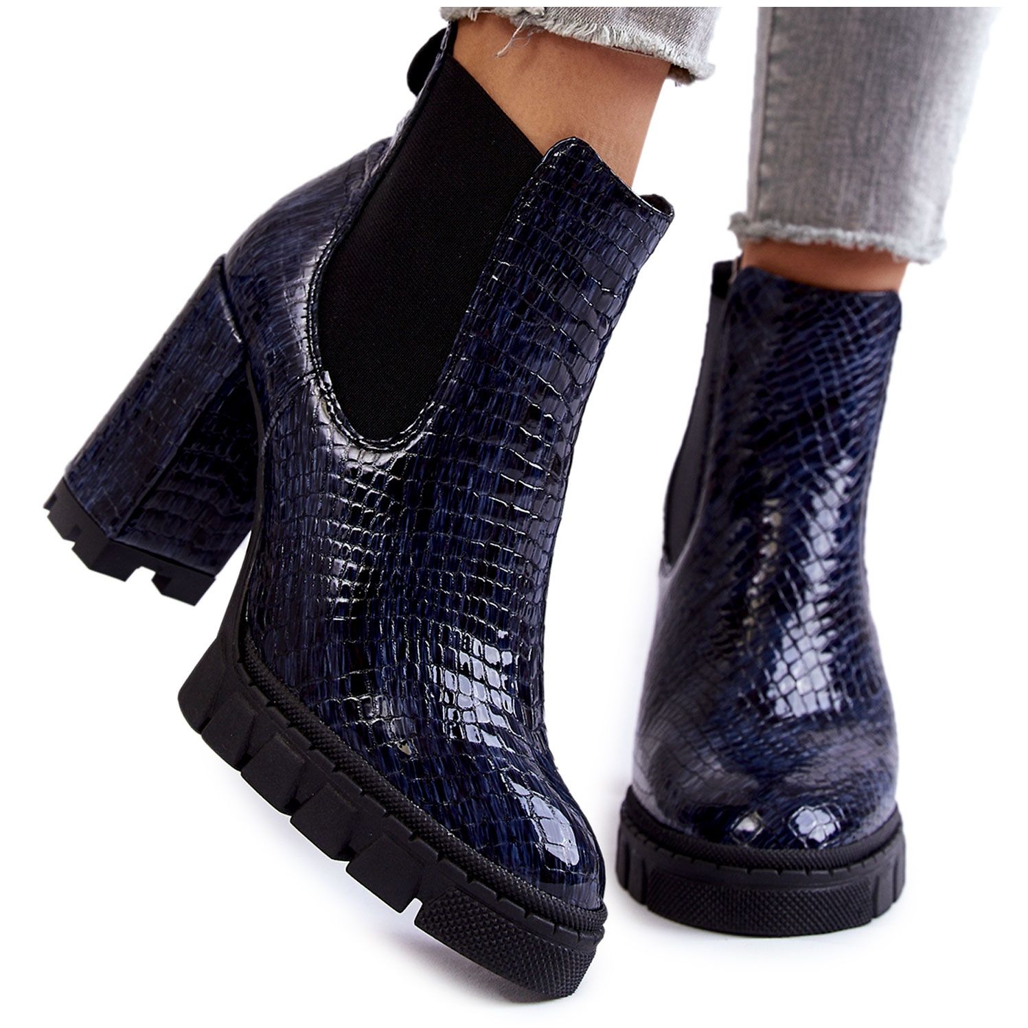 Maalattu naisten saappaat - käärmekuvio, laivastonsininen