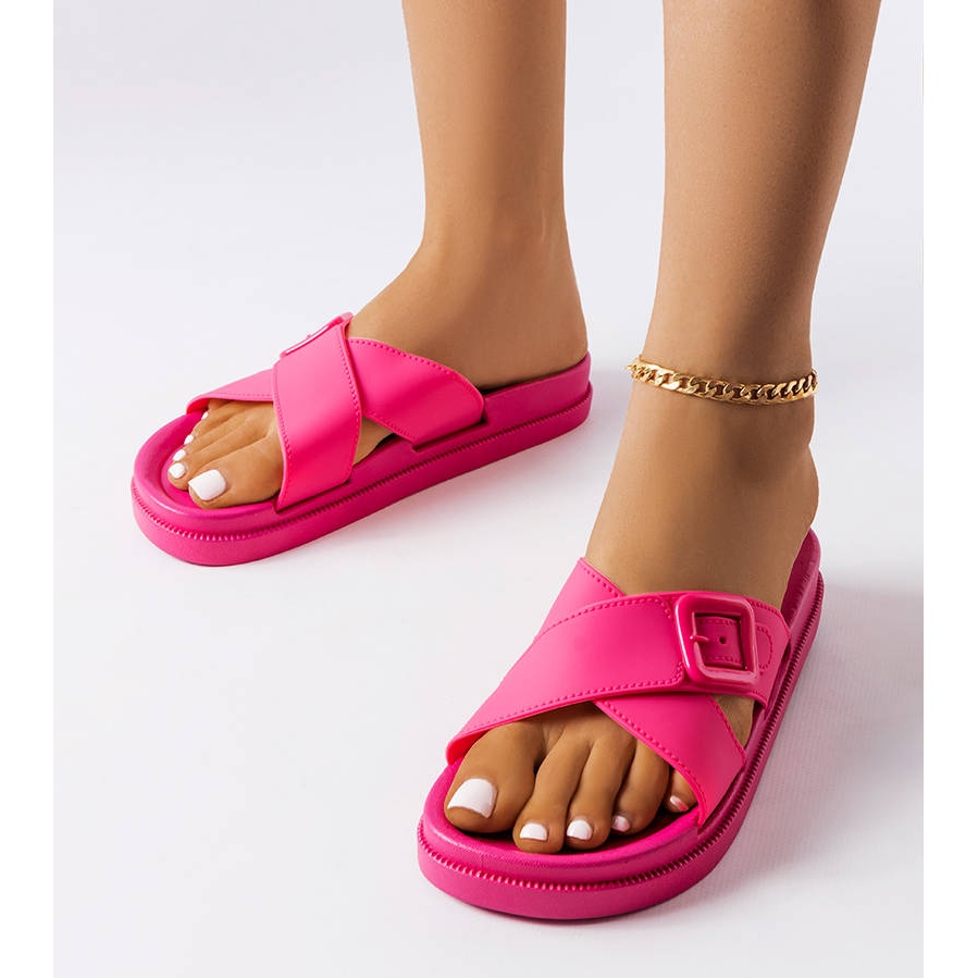 Pauline-malli on varustettu viehättävällä soljella, joka ei ole vain käytännöllinen elementti, vaan myös esteettinen korostus. Nämä fuksian sävyiset varvastossut ovat katseenvangitsija ja riittävän yleismaailmallisia sopimaan monenlaisiin kesätyyleihin rantamekoista kaupunkishortseihin.