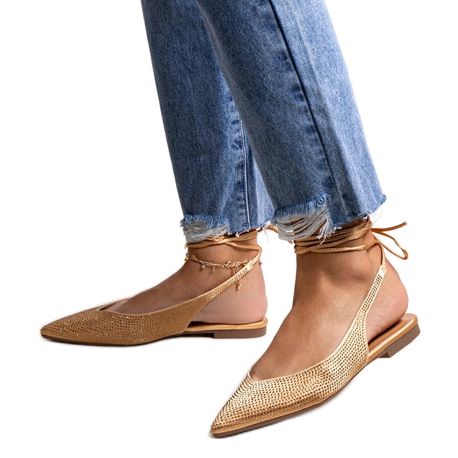 Inna marka Pehmeät nauhalliset kultaiset ballerinakengät kuutiozirkonialla kultainen