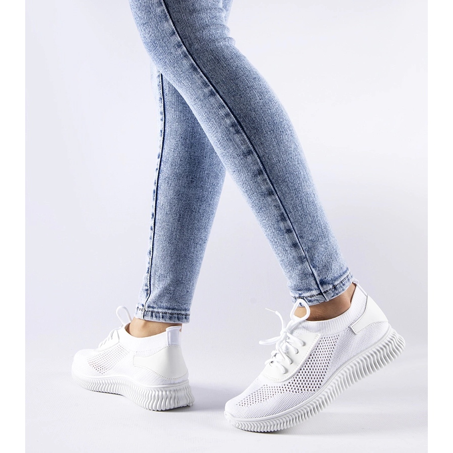 Yksityiskohdat: Pierantonion valkoiset harjakattoiset lenkkarit valkoinen