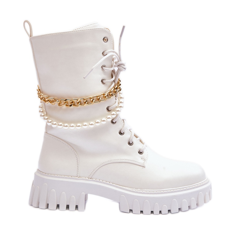 Leather High Workers with Chain White Nameer – uudet välttämättömät jalkineet