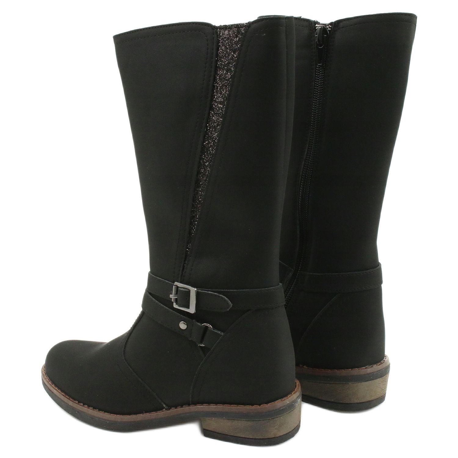 American Club American Club Pitkät saappaat, joissa glitterimusta amerikkalainen GC24 / 20