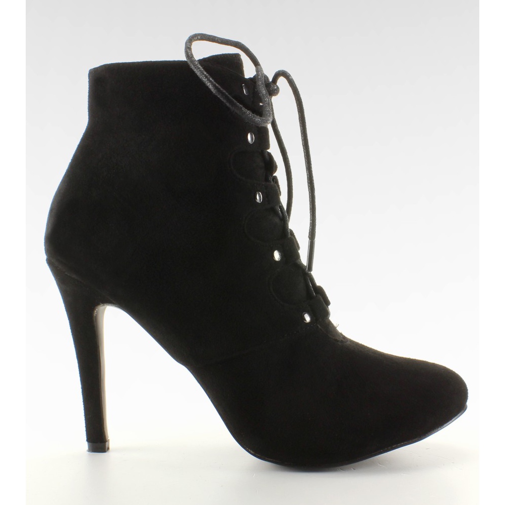 H253 Mustat nauhalliset korkeakorkoiset nilkkurit - musta, mokka