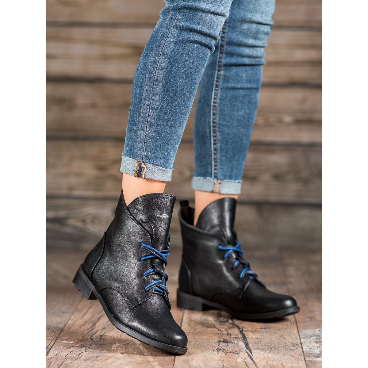 Lisäetuna on alkuperäinen kaksinkertainen pitsisidos, joka antaa kengille ainutlaatuisen luonteen. Nilkan yläpuolelle ulottuvat päälliset ja pehmeä sisäänrakennettu kantapää tarjoavat erinomaisen tuen ja käyttömukavuuden. Kuljetettu muovipohja takaa pidon ja vakauden, mikä tekee näistä saappaista ihanteellisen valinnan jokapäiväiseen käyttöön.