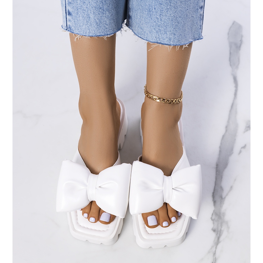 Makea rusetti antaa niille hienovaraisen viehätysvoiman, ja pyöreä kärki tekee varvastossoista paitsi muodikkaita, myös erittäin mukavia käyttää. White Platt varvastossut ovat täydellinen valinta jokapäiväiseen retkeilyyn, kävelylle rannalla tai kaupungin ulkopuolelle. Eleganssin ja rennon tyylin yhdistelmä tekee niistä täydellisen moniin kesäasuihin.