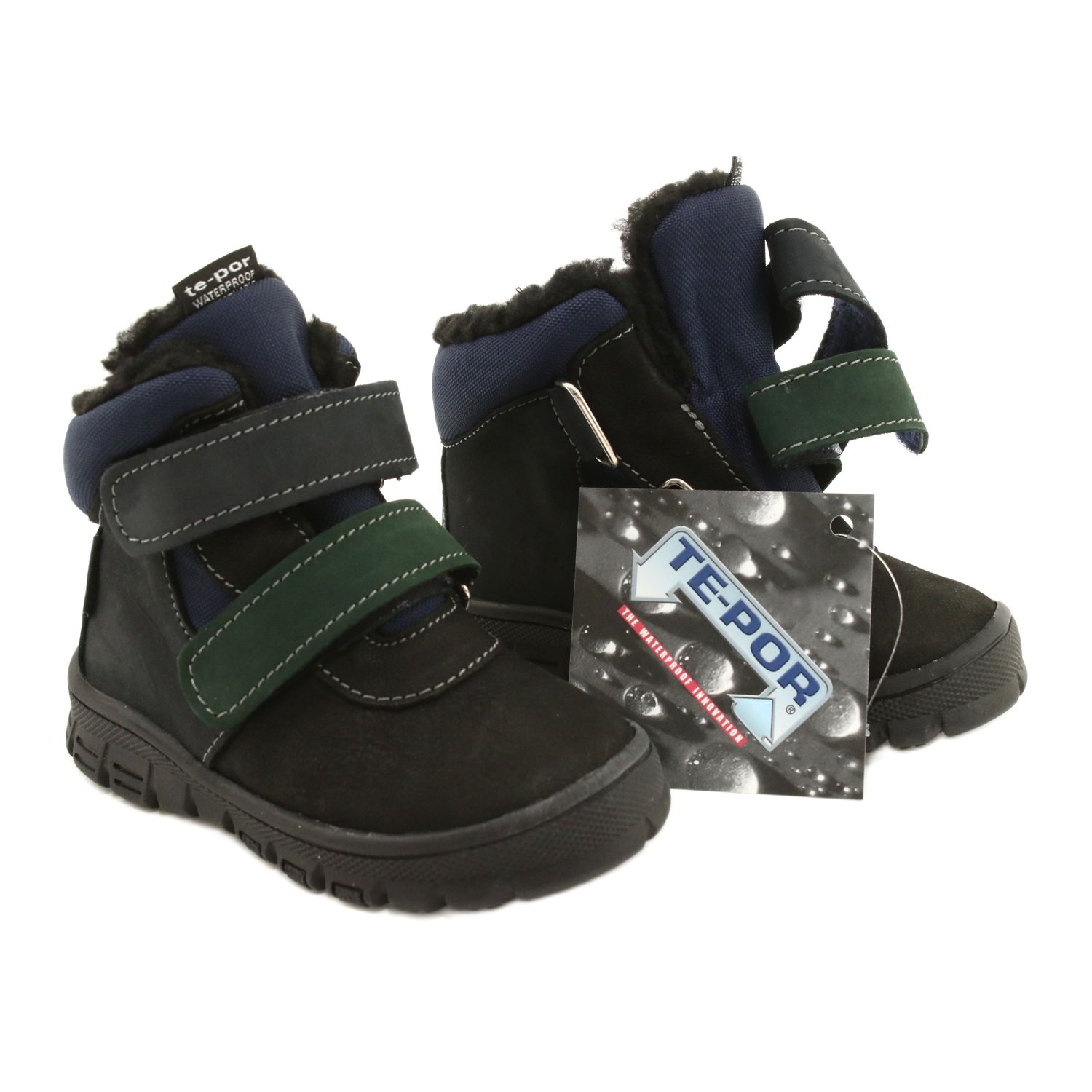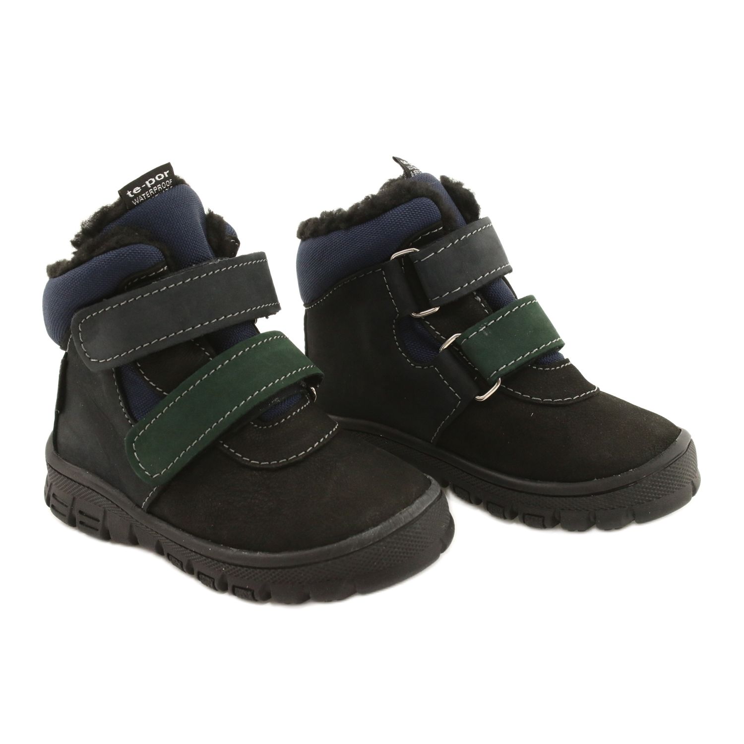 Käytännölliset ja vankat saappaat pojalle yhdistämällä luonnollisen ihon kestävään materiaaliin. Varustettu TE-Por-kalvolla (vedenpitävä) kalvolla, jonka ansiosta kengät ovat vedenpitäviä täydellisistä talvilähtöistä ja peleistä ulkopuolella. Pehmeällä turkista eristetty sisustus tarjoaa lämmön, ja jäykistetty kantapää vakiintuu ja suojaa lapsen nilkkaa.