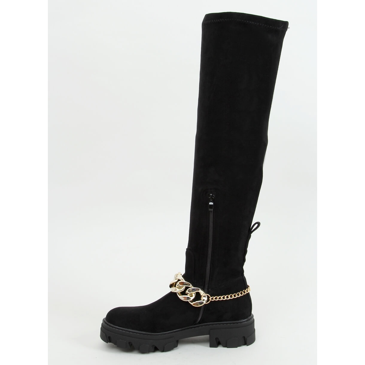 Lisäetuna on mahdollisuus kiinnittää itsenäisesti kaksi ketjua, jotka sijaitsevat yhdessä kengistä, mikä mahdollistaa personoinnin ja ainutlaatuisen ilmeen. Saappaan korkeus ulottuu polven yläpuolelle, mikä korostaa vartaloa täydellisesti ja saa jokaisen naisen tuntemaan olonsa varmaksi ja tyylikkääksi.