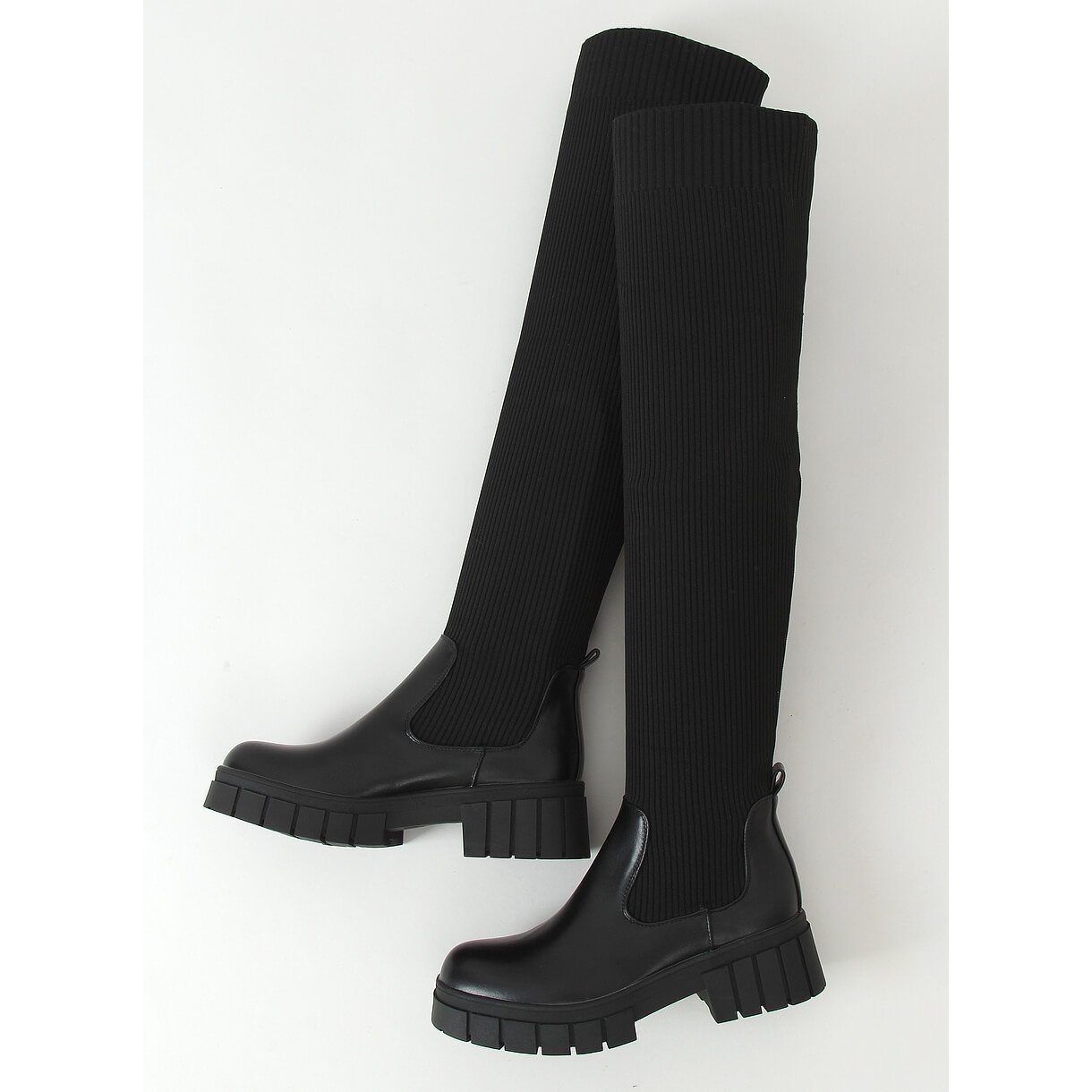 Yksityiskohdat: Polvisaappaat, joissa sukkapäällinen musta QT12 Black