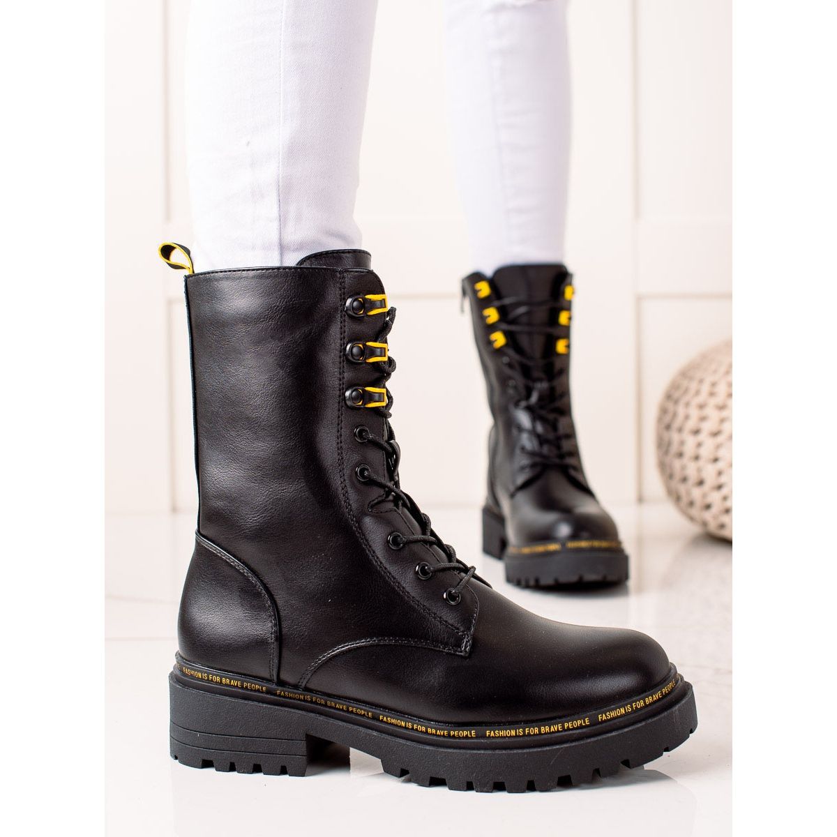 Kengät on valmistettu korkealaatuisesta mustasta ekologisesta nahasta, mikä tekee niistä paitsi visuaalisesti houkuttelevia myös ympäristöystävällisiä. Lisäksi synteettinen pohja kulutuspinnalla tarjoaa erinomaisen pidon, mikä tekee näistä saappaista täydelliset syys- ja talvipäiviin.