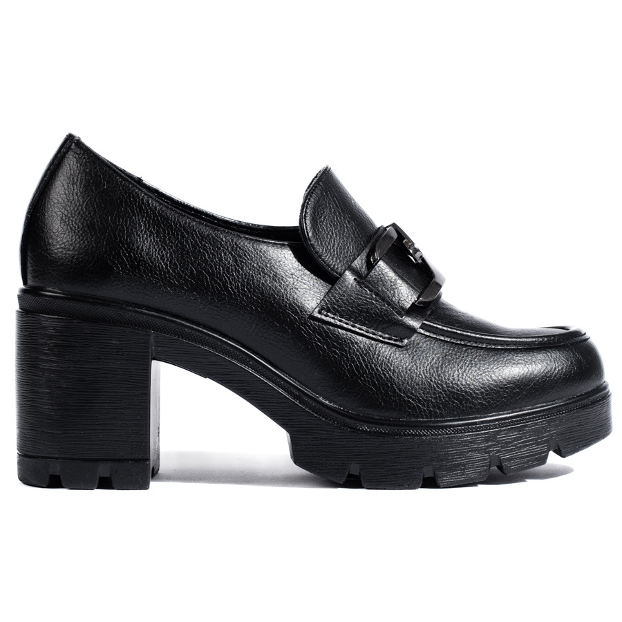 - Malli: Naisten mustat kengät leveällä korolla