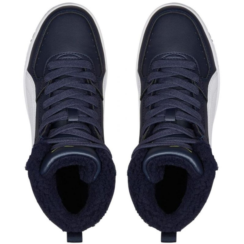 Puma Rebound Joy Fur Jr 375477 07 -kengät, tummansininen, ovat erinomainen valinta aktiivisille lapsille, jotka tarvitsevat mukavia ja tyylikkäitä kenkiä joka päivä. Ne tarjoavat mukavuutta ja lämpöä kylminä päivinä korkean kauluksen ja pehmeän synteettisen lampaannahkaeristeen ansiosta.