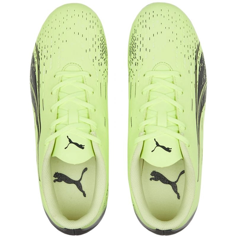 Puma Ultra Play FG/AG Jr 106923 01 jalkapallokengät ovat uusin ratkaisu nuorille jalkapallon harrastajille, jotka haluavat osallistua peliin täysipainoisesti ja kehittää taitojaan kentällä. Tämä on malli Puman Fastest Pack -kokoelmasta, joka erottuu intensiivisen vihreän värinsä lisäksi myös uusimmista teknologioista ja toiminnallisuuksista, jotka on suunniteltu nuoria urheilijoita silmällä pitäen.