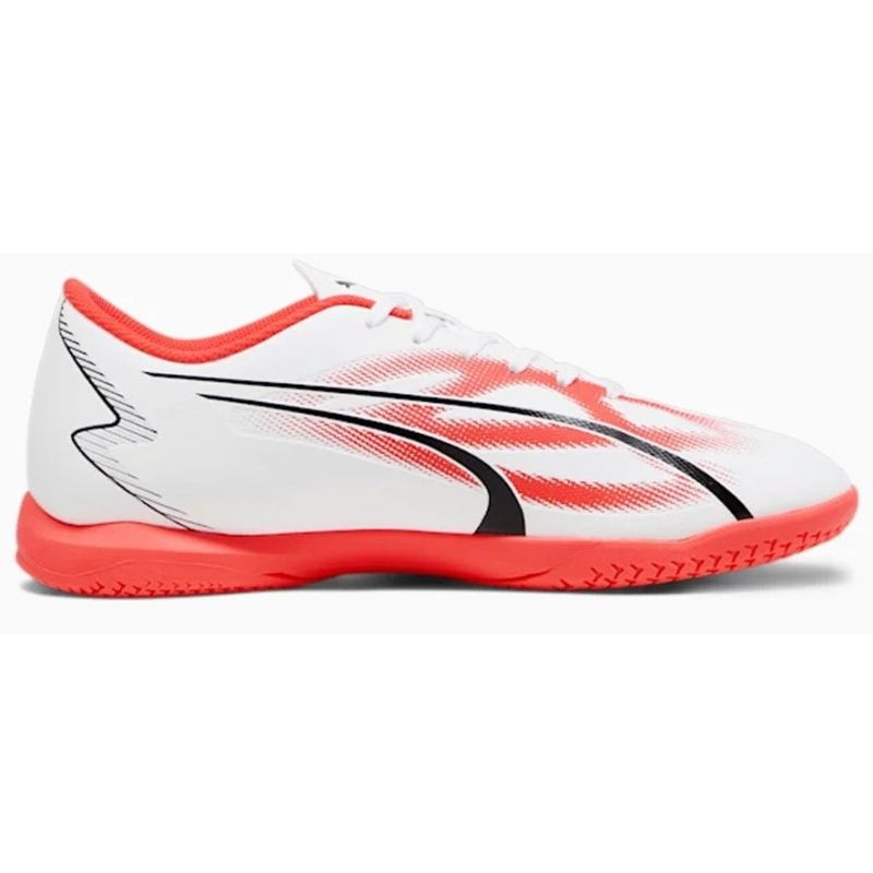 Puma Ultra Play It M 107529-01-Men's Hall White, punaisella korostuksella, luotu pelaamiseen huoneessa. Matala, pitsi -leikkaus tarjoaa jonkin verran sopivuutta, ja kumipohja takaa tarttumisen sisäpintoihin.