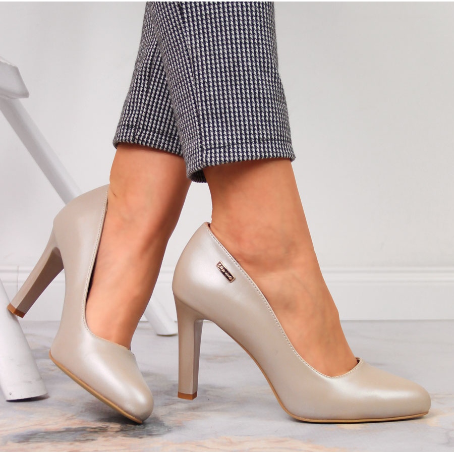 Pearl -pumput Sergio Leone alaston sävyllä ovat yhdistelmä tyyliä ja mukavuutta. Sileä ylempi, joka on valmistettu korkealaatuisesta ekologisesta nahasta, herkällä, helmipintaisella, antaa kengille hienovaraisen hehkua, jonka ansiosta ne ovat hienoja sekä muodollisissa että rentoissa tyyliissä. Klassinen, pyöreä nenä ja vakaa viesti, jonka korkeus on 9 cm, tarjoavat tyylikkään ilmeen säilyttäen samalla kävelyn mukavuuden. Luonnon nahkainen insertti huolehtii ilmanvaihdosta ja pehmeydestä käytön aikana.