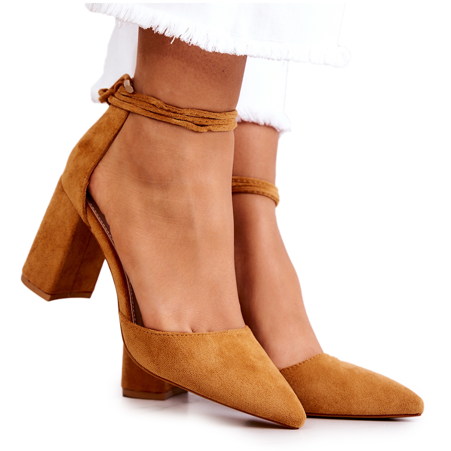 Yksityiskohdat: FB2 Pumput baarissa sidottu kameliletti ruskea keltainen