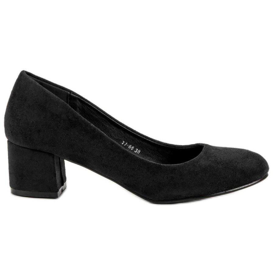 Pohjallinen on valmistettu ekologisesta nahasta ja varmistaa käyttömukavuuden koko päivän ajan, ja synteettinen pohja takaa kestävyyden ja joustavuuden. Pumppujen klassinen musta väri tekee niistä yhteensopivia moniin eri tyyleihin - sekä tyylikkäisiin mekoihin että rentoihin sarjoihin.