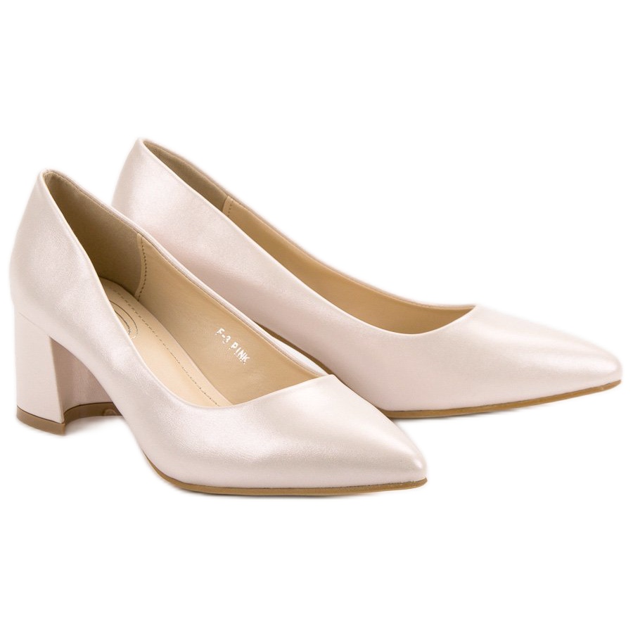 Löydä ainutlaatuiset korkokengät ruskean ja vaaleanpunaisen kauniissa sävyissä. Nämä tyylikkäät kengät ovat täydellinen valinta jokaiselle naiselle, joka haluaa yhdistää tyylin mukavuuteen. Terävä varvas ei vain kavenna jalkojen muotoa, vaan sopii myös uusimpiin muotitrendeihin. Leveän ja vakaan 5,5 cm korkean koron ansiosta nämä pumput ovat todistetusti vaihtoehto perinteisille korkokengille.