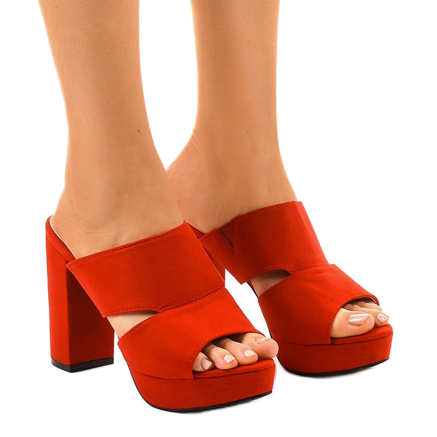 Tässä on täydellinen valinta naisille, jotka haluavat lisätä tyyliinsä hieman eleganssia ja avantgardea - punaiset mokkanahkaiset korkeakorkoiset muulit 9R55. Nämä katseenvangitsijat varvastossut erottuvat intensiivisestä, huomiota kiinnittävästä väristä ja hienovaraisista leikkauksista, jotka korostavat modernia muotoilua.