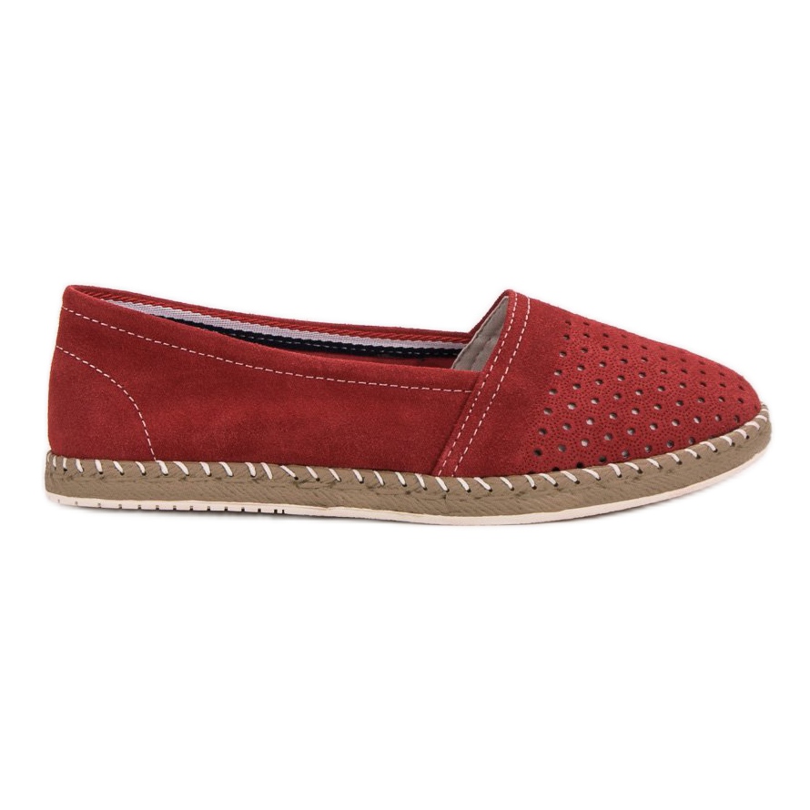 KeeShoes-kokoelmasta nämä espadrillit erottuvat yksinkertaisuudestaan ja klassisesta muotoilustaan - hallitseva punainen väri ja harjakattoinen kuvio lisäävät niihin viehätysvoimaa, ja lisäkoristeiden puute saa ne sopimaan moniin tyyleihin. Lisäetuna on nahkainen pohjallinen, joka varmistaa jalkamukavuuden koko päivän ajan.