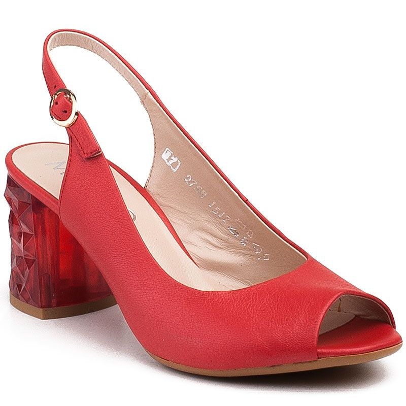 Marco Shoes Marco Shoes Punaiset nahkaiset sandaalit, joissa 3D -kantapää punainen