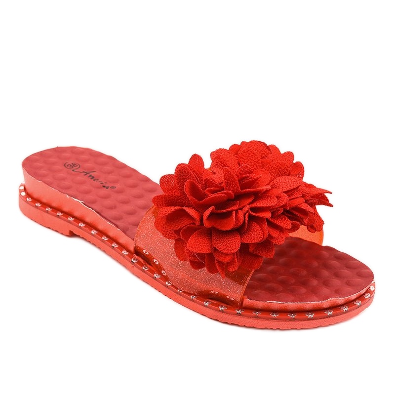 Yksityiskohdat: Punaiset varvastossut kukilla N-49 punainen