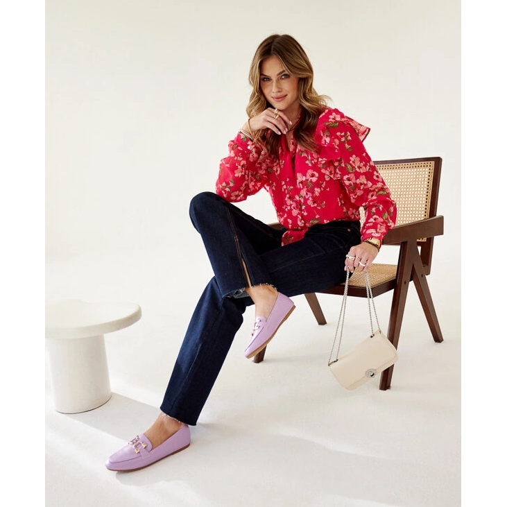 Violetti leipöt, joissa on Comerio -solki, ovat loistava valinta naisille, jotka haluavat yhdistää tyylin jokapäiväiseen mukavuuteen. Nämä tyylikkäät kengät, joissa on manteli -nenä, herättävät varmasti huomion modernilla muotoilullaan ja muodikkaalla värillä. Korkealaatuisesta ekologisesta nahasta valmistettu ne takaavat esteettisen ulkonäön lisäksi myös kestävyyden ja puhdistuksen helppouden.