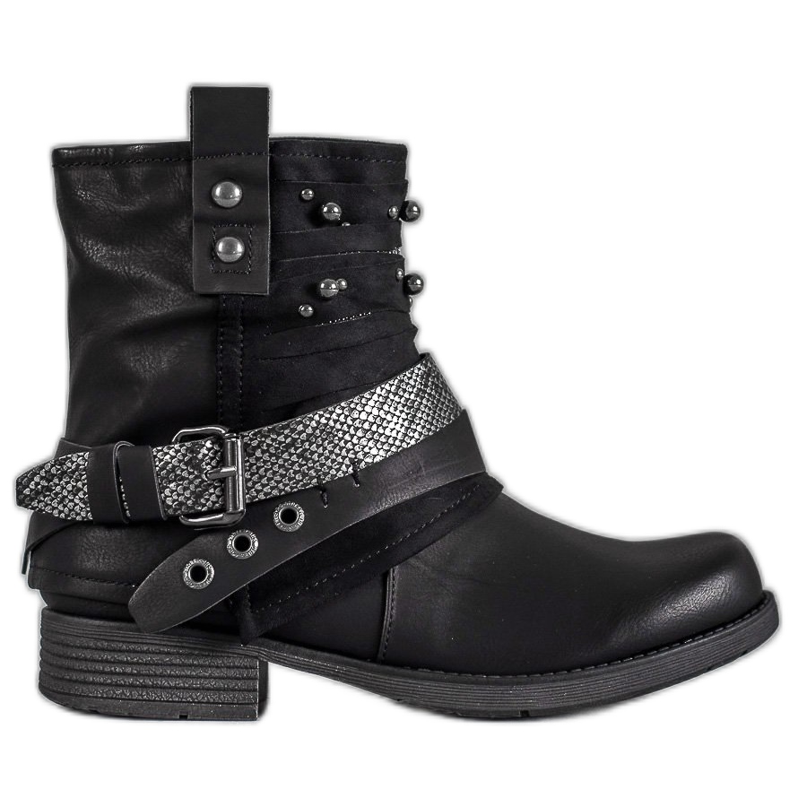 Löydä poikkeuksellinen eleganssi ja mukavuus Bestelle Biker Boots naisten nilkkurit klassisen mustan värisenä. Nämä tyylikkäät kengät on valmistettu korkealaatuisimmasta ekologisesta nahasta, mikä takaa paitsi kestävyyden myös käyttömukavuuden. Korkea päällinen suojaa tehokkaasti jalkoja epäsuotuisilta sääolosuhteilta, kun taas koristeelliset soljet ja strassit antavat niille ainutlaatuisen luonteen.
