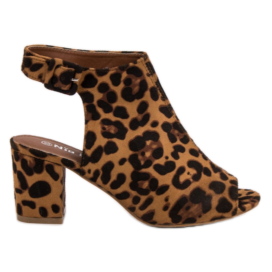 Tutustu tyylin ainutlaatuisuuteen Nio Nio -brändin ruskeilla suljetuilla sandaaleilla. Näissä ainutlaatuisissa kengissä yhdistyvät muodikas leopardikuvio elegantilla leikkauksella, mikä tekee niistä täydellisen valinnan sekä kesäjuhliin että arkipäiviin. Ekologisesta mokkanahkasta valmistetut ne tarjoavat paitsi houkuttelevan ulkonäön myös käyttömukavuuden.