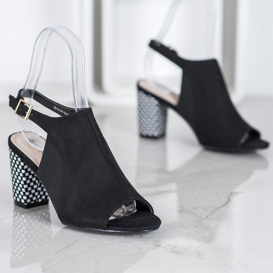 **Hyvät suljetut sandaalit mustalla ruudullisella kantapäällä**