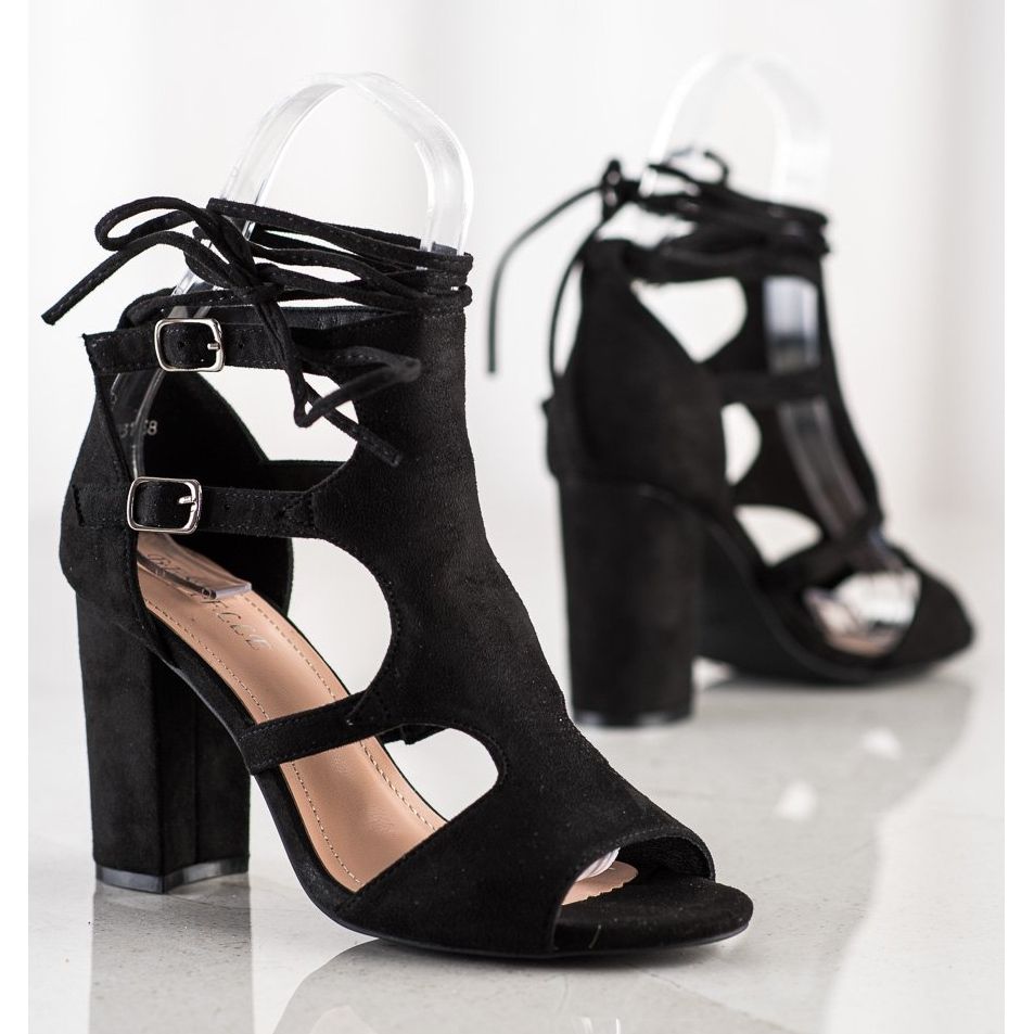 Bestelle Bestelle Rakennetut sandaalit sitovilla musta