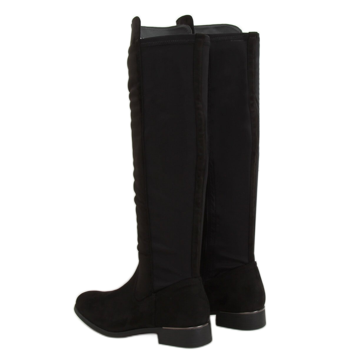 B0-281 Mustat saappaat joustavalla päällyksellä ovat täydellinen valinta jokaiselle tyylikkäälle naiselle, joka etsii yhdistelmää klassista tyyliä ja mukavuutta. Nämä tyylikkään mustan väriset naisten saappaat ilahduttavat ajattomalla muotoilullaan, jonka ansiosta ne on helppo sovittaa eri tyyleihin.