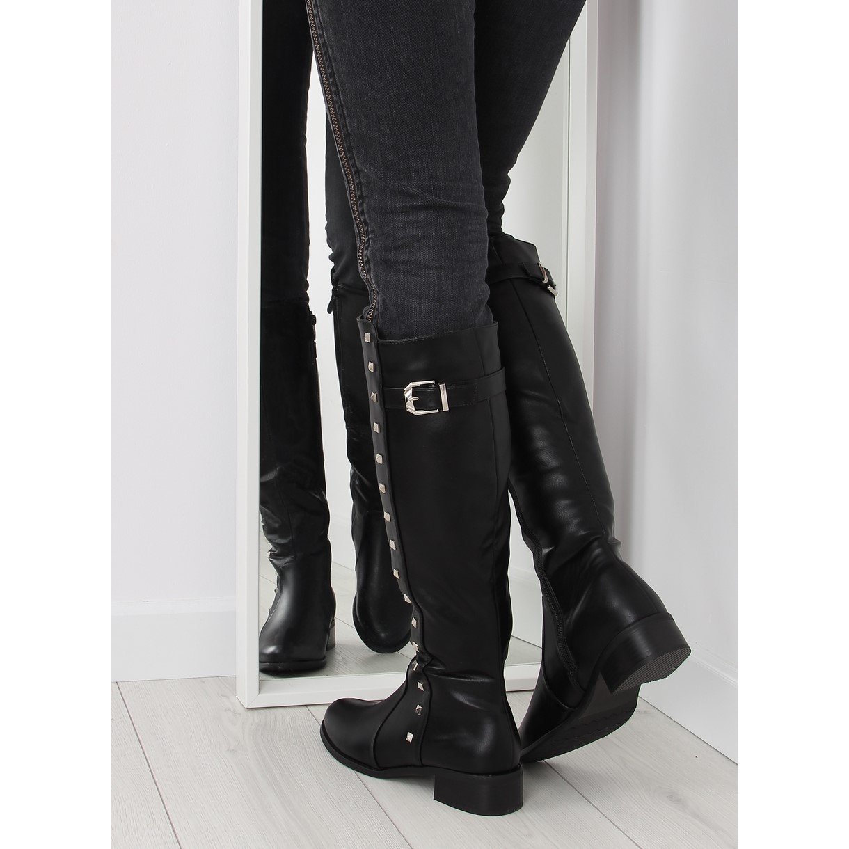 Mustat PE115P-nastalliset saappaat ovat täydellinen valinta naisille, jotka haluavat yhdistää tyylin mukavuuteen. Nämä vaikuttavat tasakorkoiset saappaat erottuvat ylhäältä, joka on koristeltu nappeilla, jotka antavat niille rohkeamman ja rockisemman luonteen. Ohut varpaat saavat kengät näyttämään kauniilta jalassa korostaen naisellista siluettia.